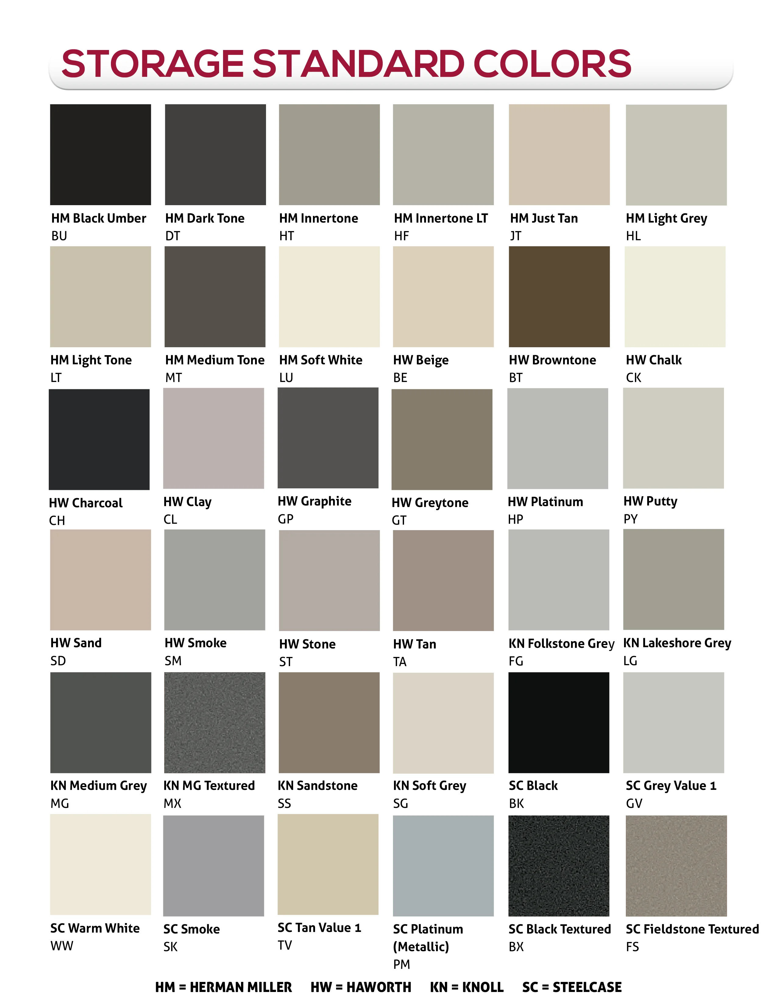 | Color | HM Black Umber (BU), HM Dark Tone (DT), HM Innertone (HT), HM Innertone Light (HF), HM Just Tan (JT), HM Light Gray (LG), HM Light Tone (LT), HM Medium Tone (MT), HM Soft White (LU), HW Beige (BE), HW Brown Tone (BT), HW Chalk (CK), HW Charcoal (CH), HW Clay (CL), HW Graphite (GR), HW Grey Tone (GT), HW Platinum (HP), HW Putty (PT), HW Sand (SA), HW Smoke (SM), HW Stone (ST), HW Tan (TA), KN Folkstone Gray (FG), KN Lakeshore Gray (LS), KN Medium Gray (MG), KN Sandstone (SS), KN Soft Gray (SG), SC Black (BK), SC Gray Value 1 (GV1), SC Gray Value 2 (GV2), SC Platinum Metallic (PM), SC Smoke (SK), SC Tan Value 1 (TV), SC Warm Brown 1 (WB1), SC Warm White (WW), Sky White (SW) |