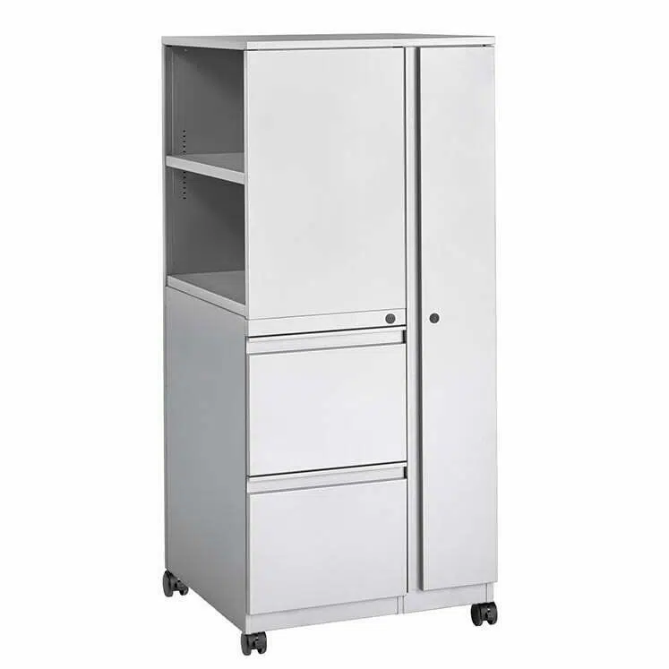 4-High Wardrobe-Bookcase Tower, Right-Hand, File/File, with Casters