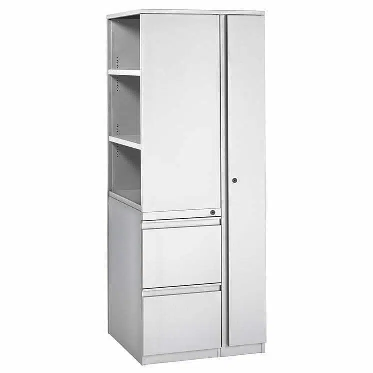 • Wardrobe-bookcase tower includes two locks that are keyed alike, handles are available in the standard full pull style (other pull styles available upon request), and meets or exceeds ANSI-BIFMA standards for safety and reliability.